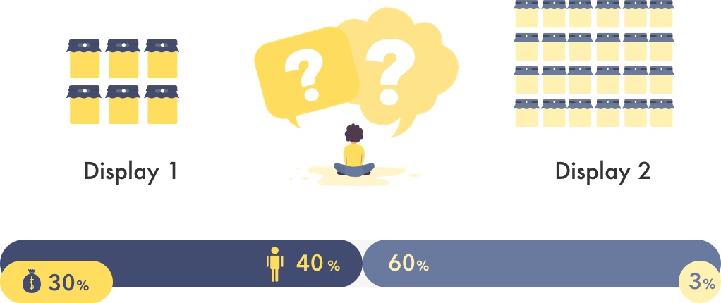 Choice overload can happen any time we feel overwhelmed by the sheer number of options. When faced with too many choices, it can weaken people's decision-making ability. As in the jam example, many of us would sooner walk away empty-handed than deal with the stress of choosing from such a large selection.