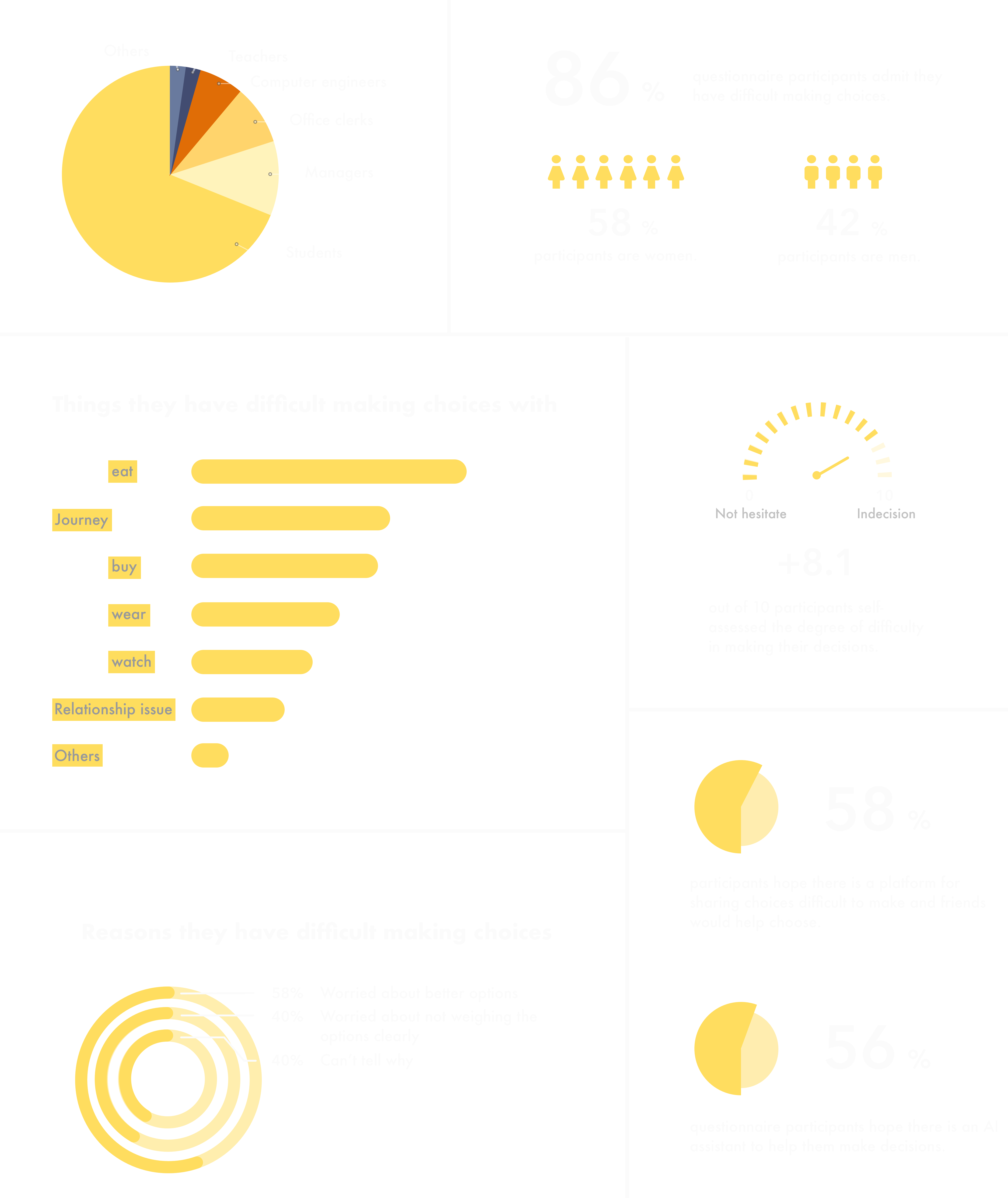 People will be afraid of missing the best choice, and they want to exhaust everything possible before making a decision. When there are fewer choices, people are more likely to be satisfied with the results after making a decision, and endlessly trying to find the optimal solution can lead to indecision, depression, stress, regret, and unhappiness.